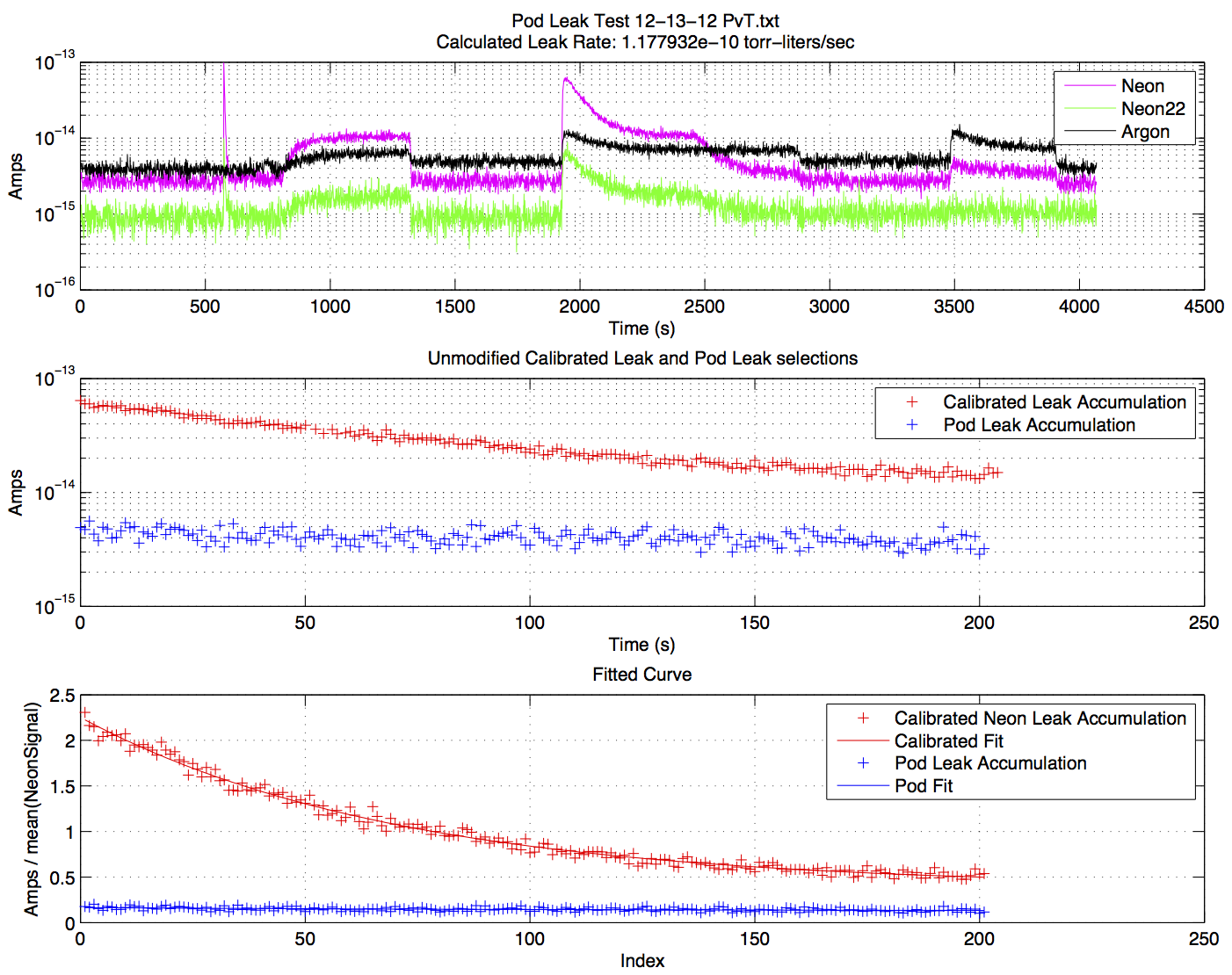Leak test results from in-vacuum equipment.