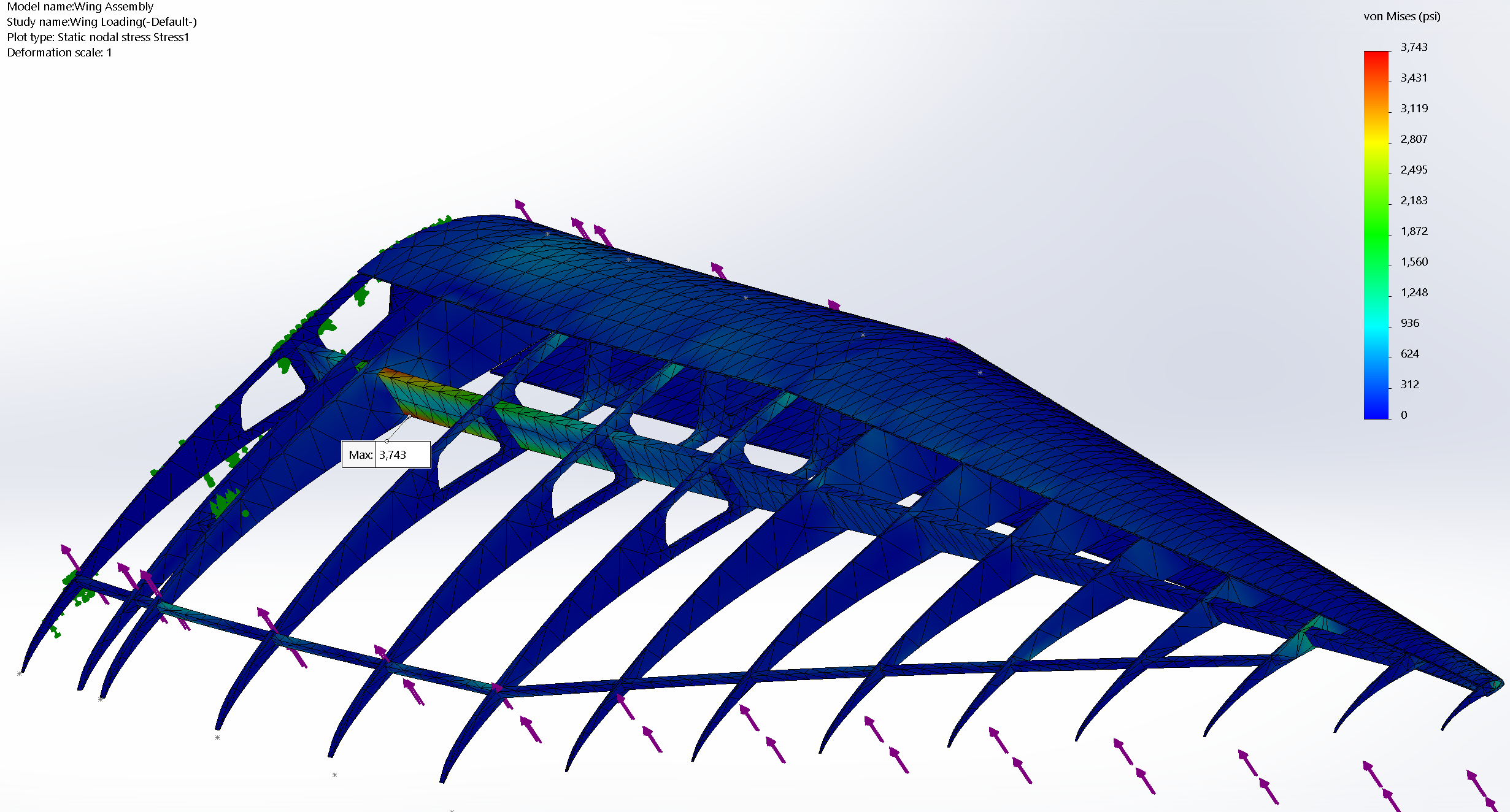 Data collected from wing segment test.